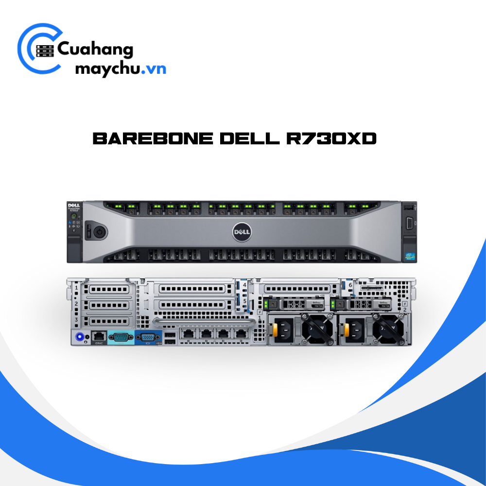 Đánh giá Barebone Dell R730XD: 2 x heatsink, 12 x tray 3.5″, Raid H730, 2 x PSU 750W